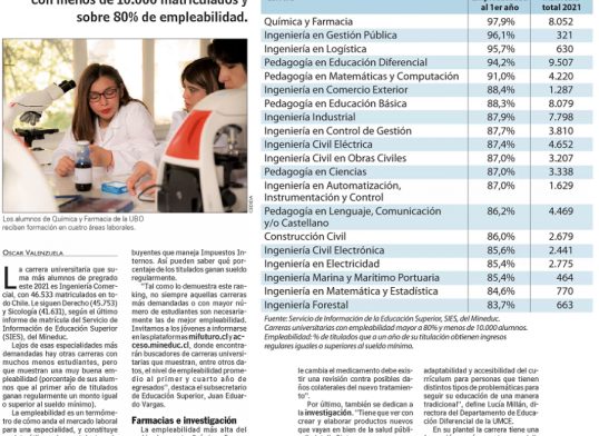 PMYC entre las carreras con mejor empleabilidad al primer año de titulación (LUN)