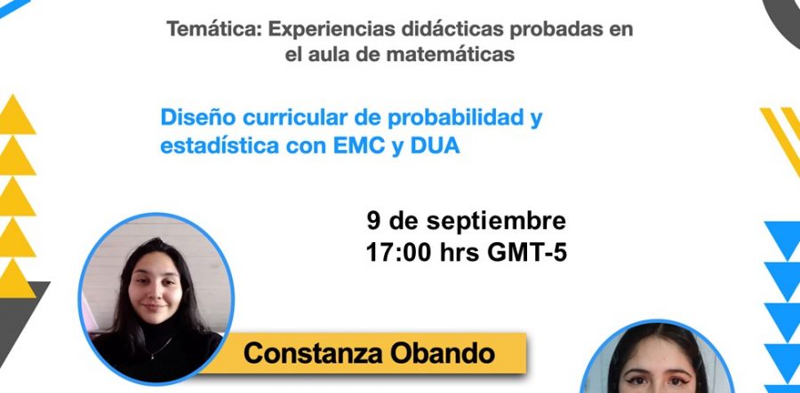 El día de ayer nuestra estudiantes Constanza Obando y Catalina Fernández participaron del 2do. Encuentro Virtual: la investigación y el aula de matemáticas. organizado por el Canal de Youtube MatEduMat con la presentación ‘Diseño curricular de probabilidad y estadística con EMC y DUA’