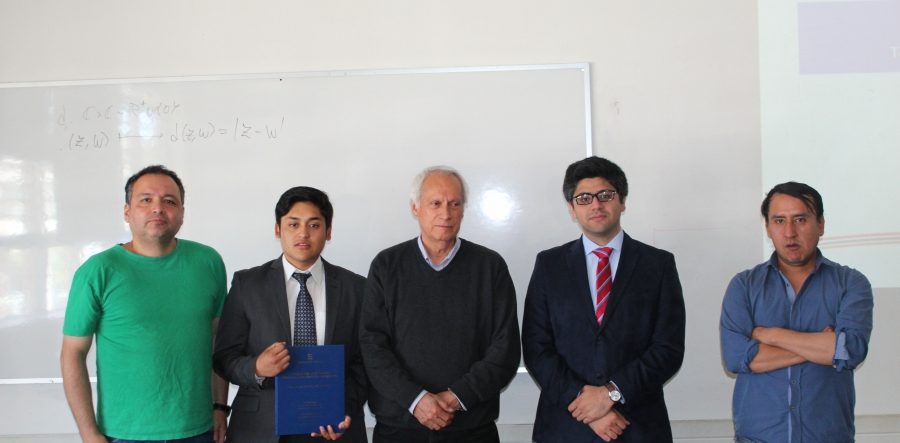 Este Jueves 24 de Enero defendieron nuestros estudiantes Héctor Cárcamo y Samuel Fuentes de manera sobresaliente su trabajo final “Teorema del Residuo y sus Aplicaciones» bajo el patrocinio del Profesor Rigoberto Medina y con la revisión de los profesores Roberto Díaz y Carlos Martínez. Felicitaciones!