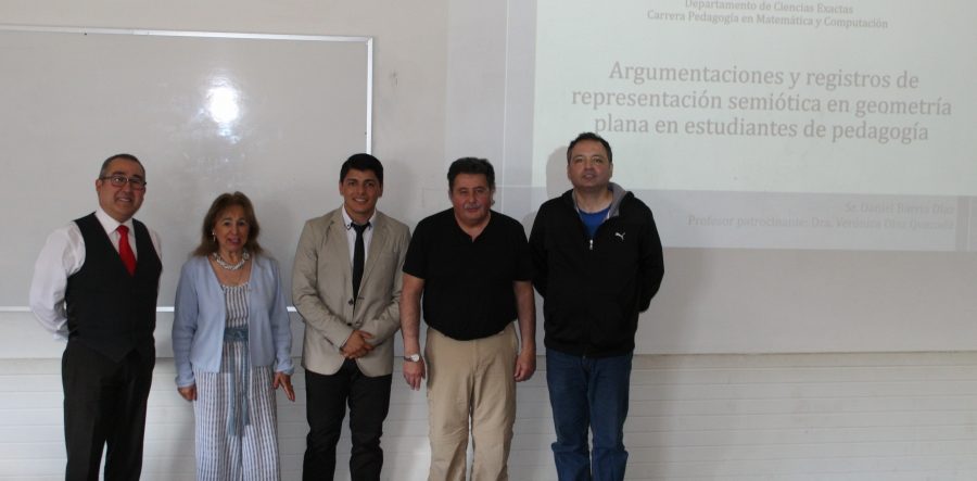 Este Lunes 28 de Enero defendió nuestro estudiante Daniel Barria su trabajo final “Argumentaciones y registros de Representación Semiótica en Geometría Plana en Estudiantes de Pedagogía» bajo el patrocinio de la Profesora Veronica Díaz y con la revisión de los profesores Alvaro Poblete y Francisco Nuñez. Felicitaciones!