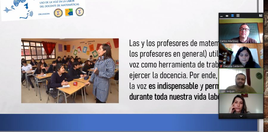 Con una buena concurrección dentro de las acciones del Proyecto Estudiantil ‘Cuidados de la Voz’ liderado por nuetros estudiantes Daniela Calderon, Isaac Imilpan, oportunidad donde profesores, profesoras del área pudieron realizar sus preguntas y consultas al equipo de fonoaugiologos Teresa Bertucci, Silvana Silva, Jordan Riffo.