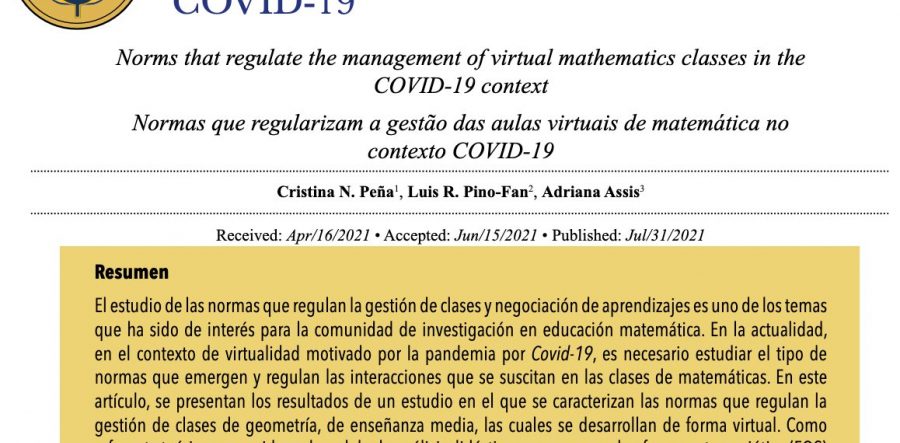 El estudio de las normas que regulan la gestión de clases y negociación de aprendizajes es uno de los temas que ha sido de interés para la comunidad de investigación en educación matemática. En la actualidad, en el contexto de virtualidad motivado por la pandemia por Covid-19, es necesario estudiar el tipo de normas que emergen y regulan las interacciones que se suscitan en las clases de matemáticas. En este artículo, se presentan los resultados de un estudio en el que se caracterizan las normas que regulan la gestión de clases de geometría, de enseñanza media, las cuales se desarrollan de forma virtual. Como referente teórico se considera el modelo de análisis didáctico que propone el enfoque ontosemiótico (EOS) y, particularmente, las nociones de prácticas del profesor de matemáticas y el sistema de clasificación de normas. La investigación se desarrolla desde un paradigma cualitativo-naturalista, dado que se analizan dos clases sobre relaciones métricas en las circunferencias, impartidas a estudiantes chilenos de tercero de enseñanza media (15-16 años). Como conclusión, se logran caracterizar las normas que regulan los procesos de interacción en un aula virtual, se muestra la adaptabilidad de docentes en un contexto excepcional-virtual de clases, donde instaura normas y las cambia cuando es necesario para garantizar la optimización de los aprendizajes de sus estudiantes.
