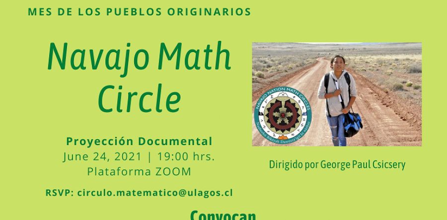 Por otro lado, el mes de Junio se denomina el Mes de los Pueblos Originarios, por lo que desde nuestra universidad se estan realizando diversas activiades en reconocimiento a la cultura de nuestros pueblos originarios, en especial del pueblo mapuche-huilliche tan presente en nuestra comunidad. Hemos querido ser parte de este programa, sumandonos con la proyección del documental Círculo Matemático Navajo del realizador Goerge Paul Csicsery , que es el testimonio como desde la interacción entre un grupo de matemáticas y matemáticos, y una comunidad Navajo en el estado de Arizona en Estados Unidos, emergen experiencias únicas en que se entrelazan saberes desde la disciplina y cosmovisión Navajo.